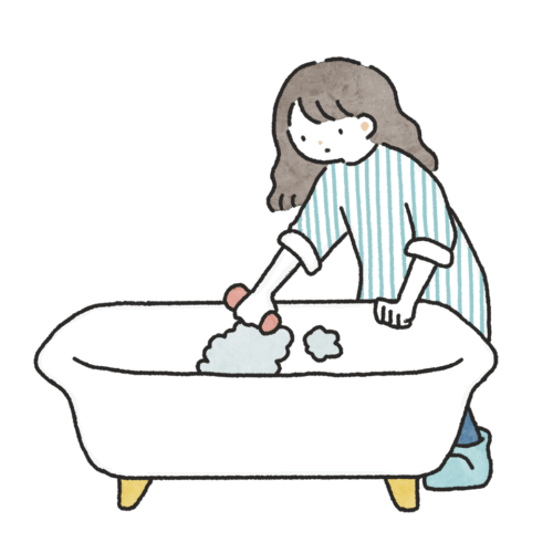 お風呂掃除をする人のイラスト