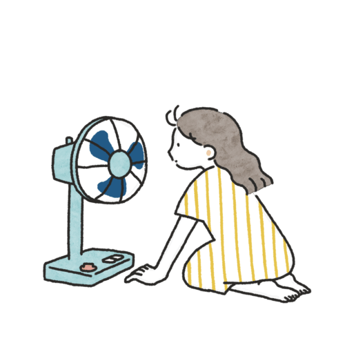 扇風機にあたる人のイラスト